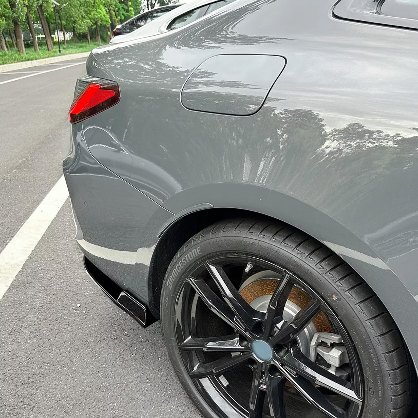 Enhance the aggressive stance of your BMW 4 Series G22 G23 M Sport (2020+) with these precision-engineered rear bumper corner splitters in gloss black.
