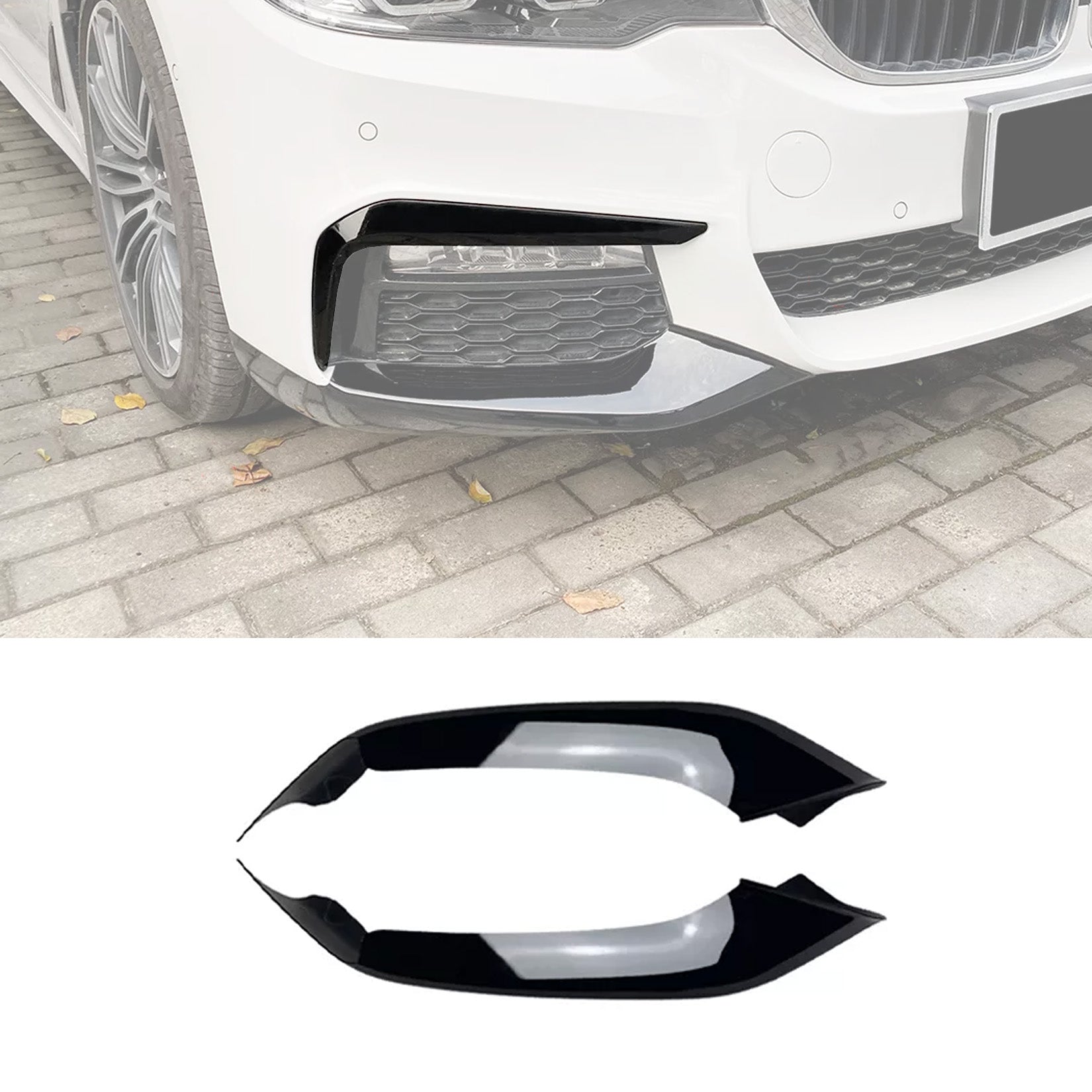 BMW 5 SERIES G30 (PRE LCI) 2017-2020 FRONT BUMPER CORNER SPLITTER IN GLOSS BLACK